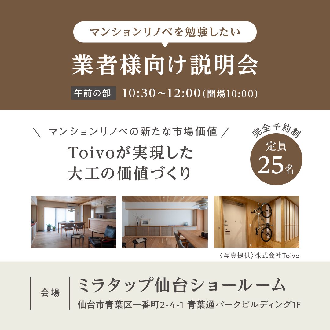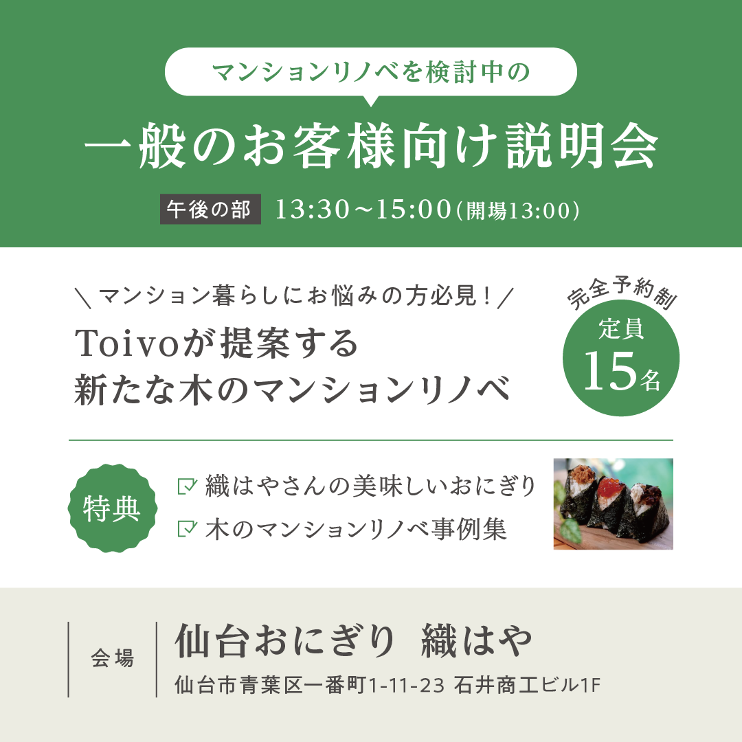 東京・埼玉で“木のマンションリノベーション”を展開する「Toivo」友政代表が、杜設計と特別コラボ!