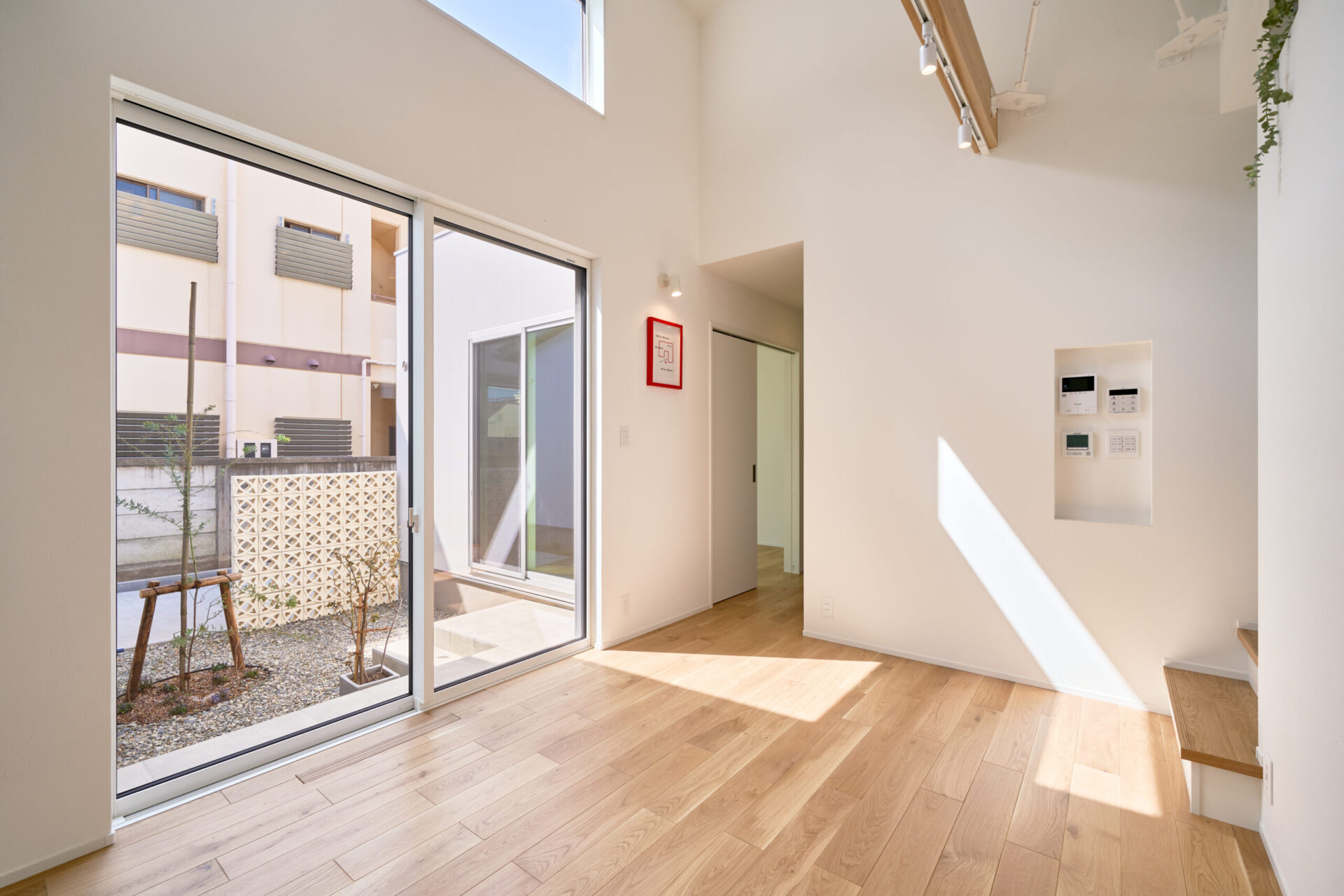 狭小地に建つ、自然光を取り込んだ開放感のある家